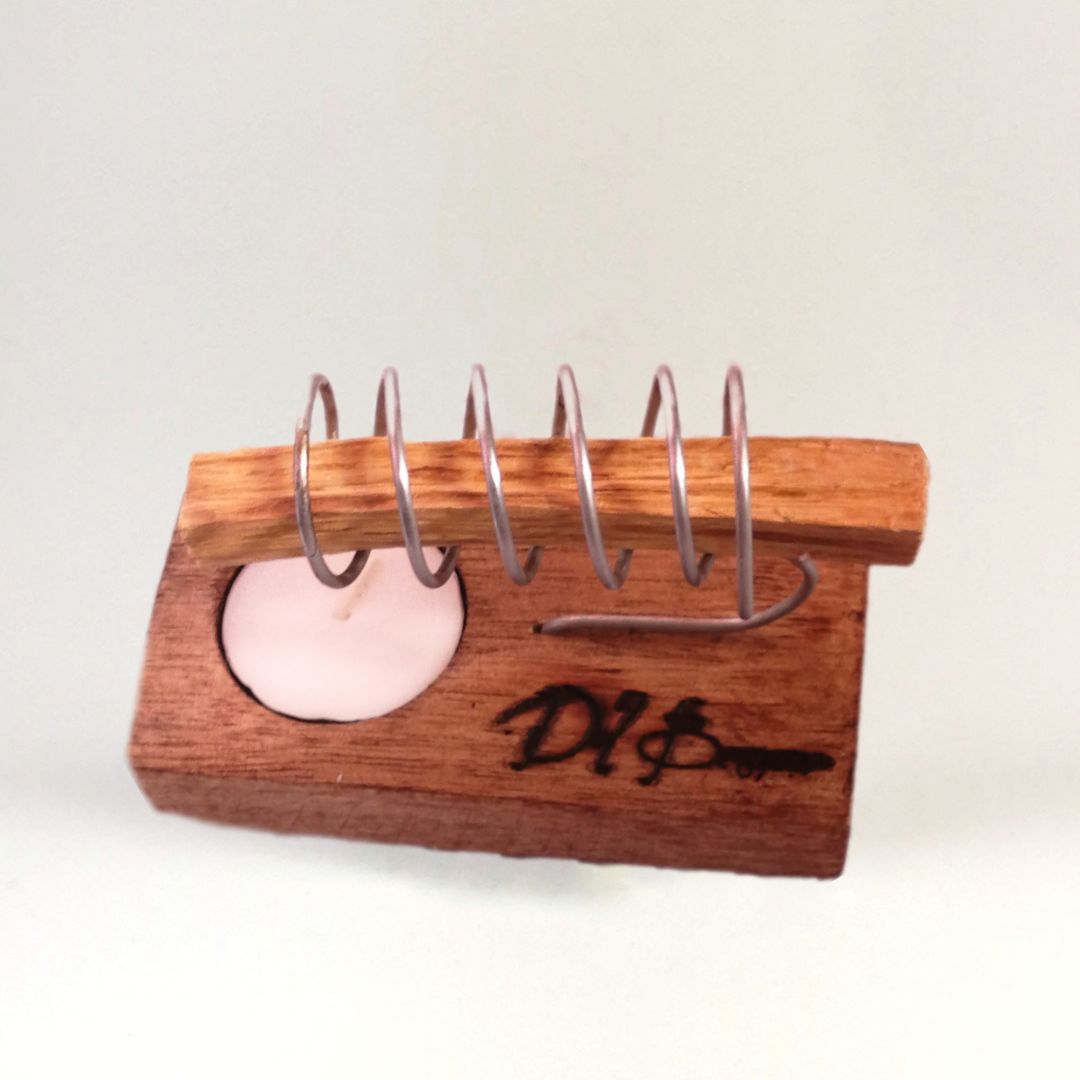 Fabricado artesanalmente con un diseño único, ideado para mantener la varilla de Palo Santo encendida mientras está en contacto con el fuego de la candela.
